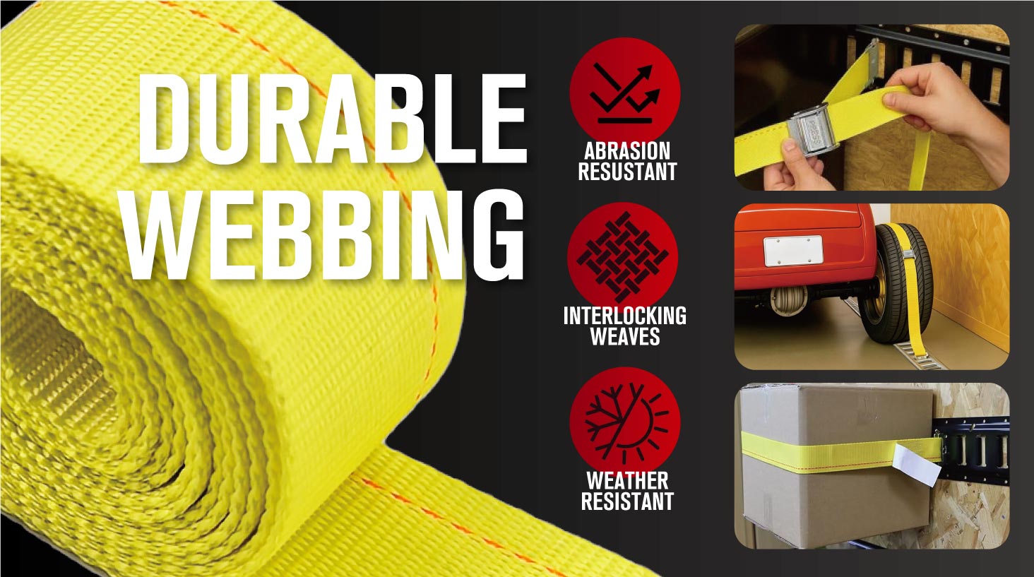 Our 12ft industrial-grade webbing is the gold standard for reliable load restraint, featuring precision-woven edges that enhance structural integrity and prevent premature fraying. This high-tenacity material is engineered to remain exceptionally flexible for fast rigging, yet tough enough to withstand the daily rigors of construction and towing. With built-in abrasion resistance and a colorfast UV treatment, it delivers a dependable, heavy-duty performance that won't compromise safety in demanding outdoor environments.