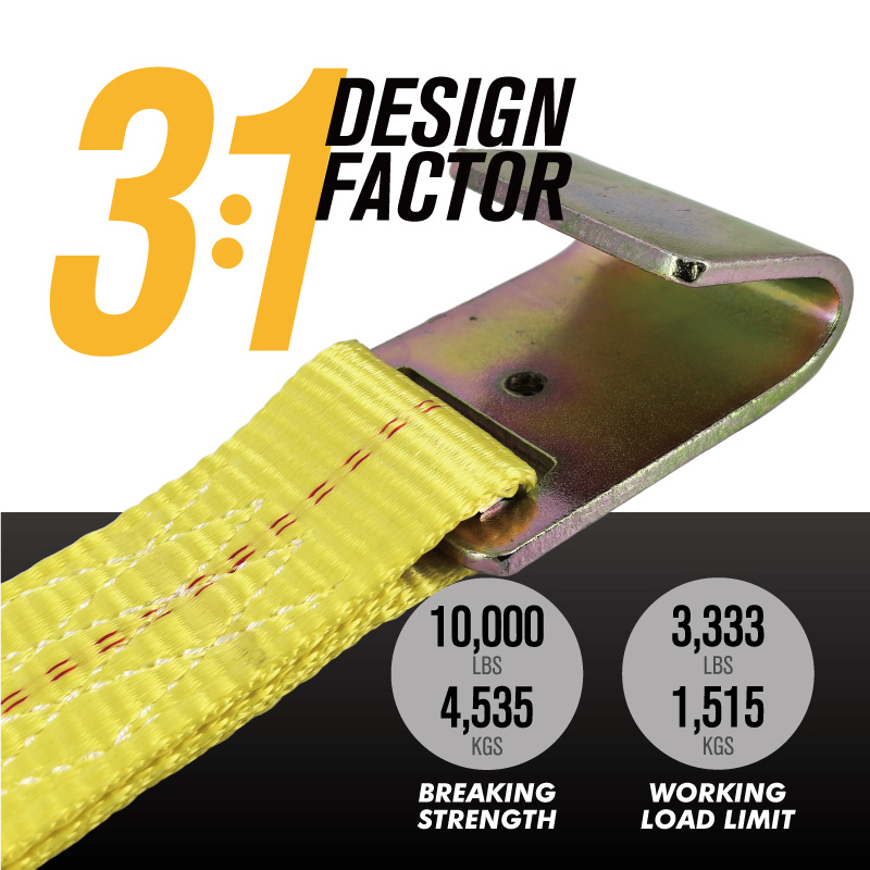 Optimized for oversized cargo and long-haul flatbed logistics, these 2" x 40' heavy-duty straps provide the extended reach required for industrial machinery. Built to meet rigorous WSTDA safety protocols, each strap maintains a consistent 10,000 lbs breaking strength and 3,333 lbs WLL. The high-visibility yellow polyester is UV-resistant and low-stretch, ensuring your 40ft load stays tensioned and secure over thousands of miles.